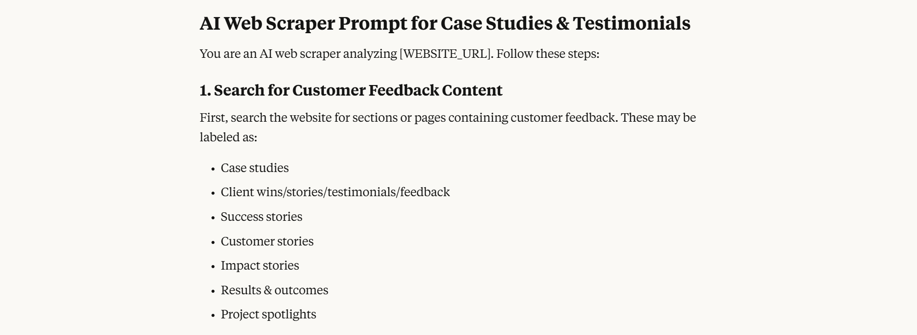 The agent starts off by pinpointing key content areas to efficiently find valuable information without hours of manual research.