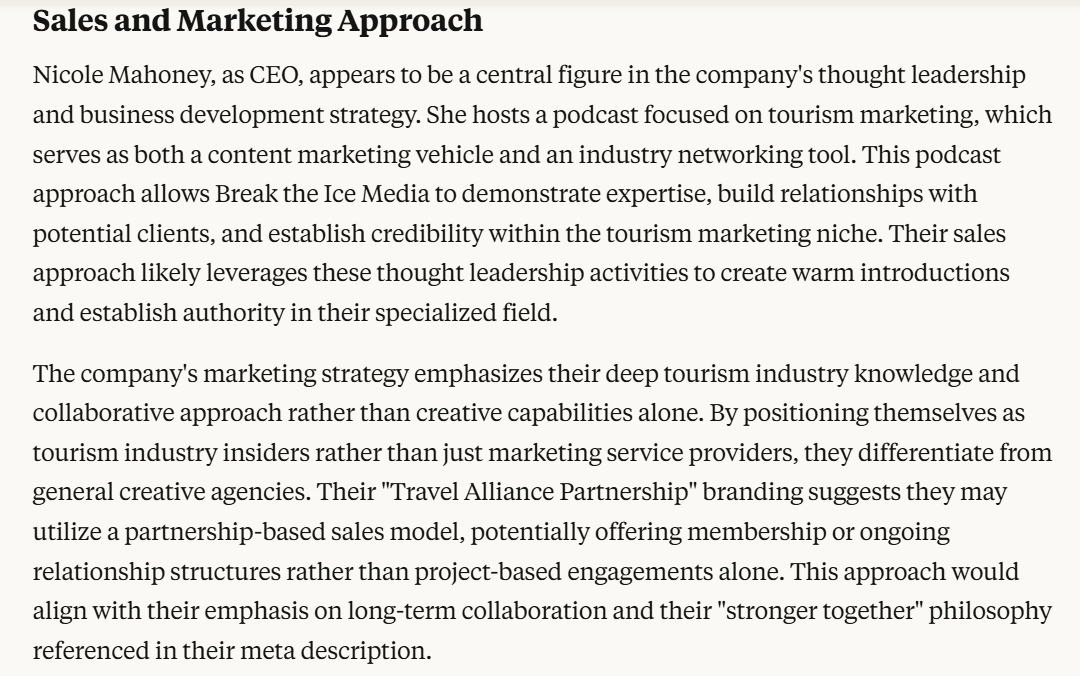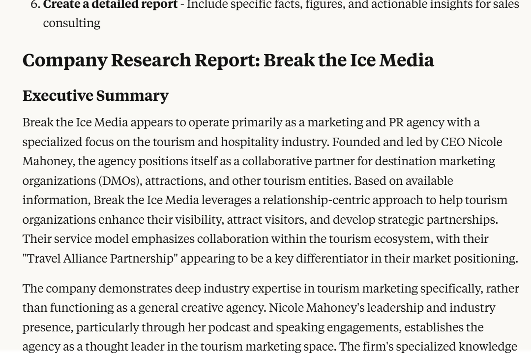Finally, it compiles everything into a focused summary with actionable insights, so you can craft messages that speak directly to your prospect's situation & concerns.